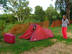 There was also a lot of rodeo & horse-related stuff ... We set up the tent and Claudia was happy to vacate the camper ... we placed her suitcase outside, but the joke didn't work. |