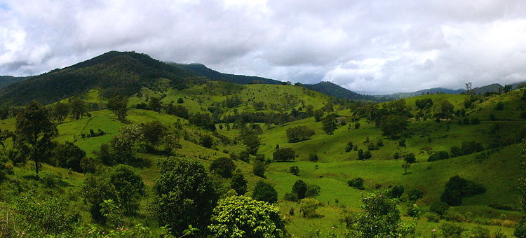 terrain quickly changed from rugged mountains to flat farm and pasture land.