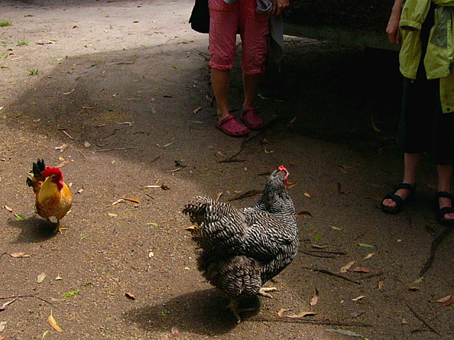 | Some chickens escorted us as we walked around the grounds. | Lunch for the Kookaburra | |