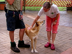 As we were about to leave this area, a cutie came up and seemed to want to shake Nicole's hand. Then it began to lick her and at the same time seemed to try to take her watch off ... too funny! |