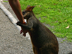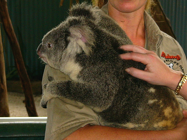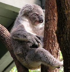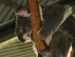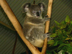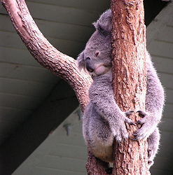We next visited the Koala area for another up-close encounter. I was able to pet the koala while it was in a tree. It seemed like a live teddy bear, but with fur that felt rough, like a scrubbing pad. |