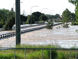 From up in the hills we could see the flooding problems ... and we could see the bridge we want! |