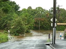 To analyze the situation: The rain that falls on the mountains has to flow somewhere ... probably down into a valley ... which was where we were ... and is why we suddenly came to a flooded road. The kids said that it may take all night for the water level to go back down ... so we turned around and took a different road.. |