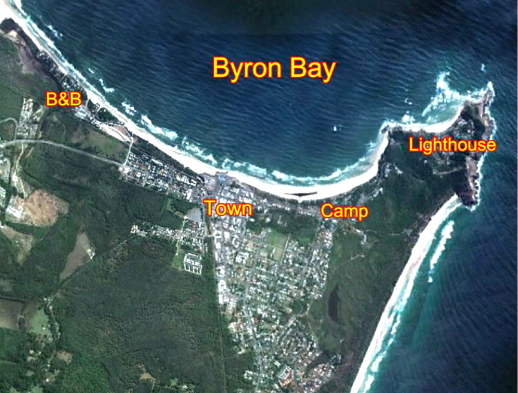 top of a hill we got a decent view of Byron Bay ... the town, beaches and surrounding