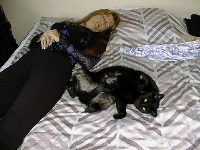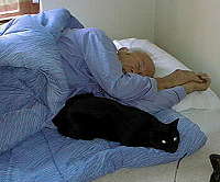 Our cat, Blacky likes to hang around our visitors. |
