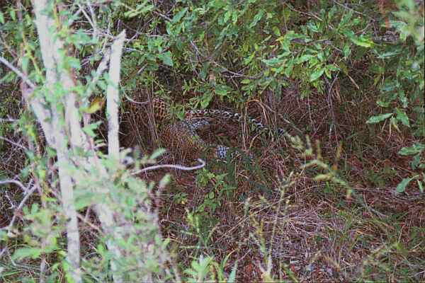 Mom & baby Leopard lounging in the bush; hard to see! |
