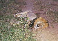 "kill". Since Upon arrival we saw a male lion in the road. We went around him, only to find another in the grass. |