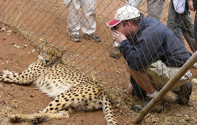 Glen gets a close-up of Byron, the tamest Cheetah; nicknamed