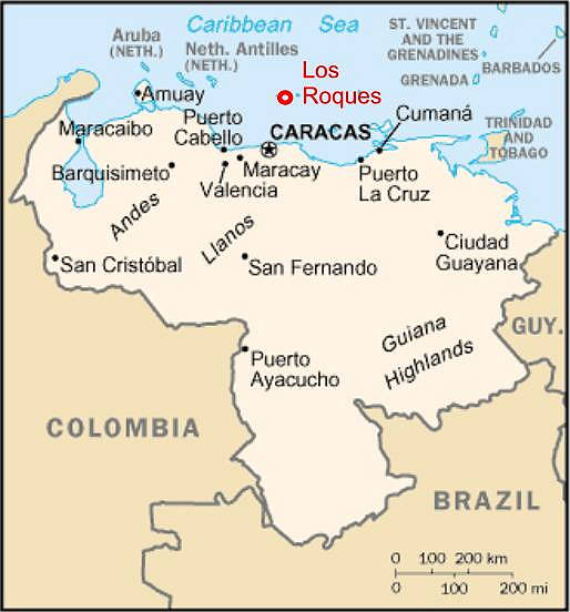 It's 90 miles (150kms) from Caracas to Los Roques. |