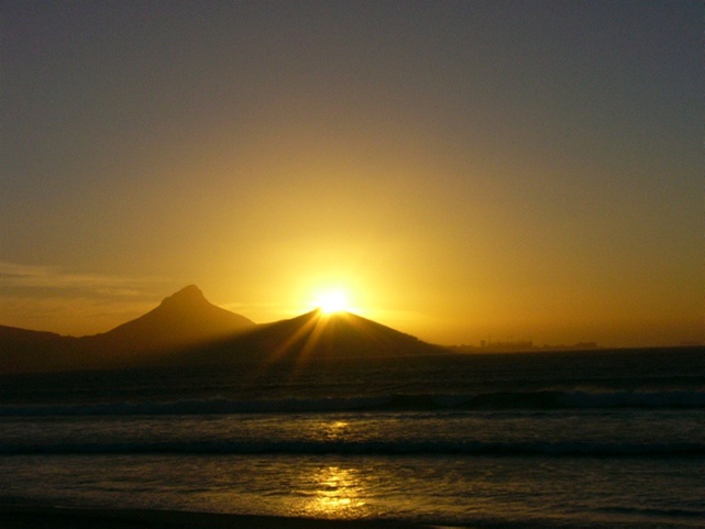 | Later on a few folks began to look up in the air and point towards Lion's Head. After my eyes adjusted, I could see a number of hang-gliders coming down. The peak is a popular place to hike up and jump off, which takes quite an effort. They land on the green strip of land between the beaches. | ||