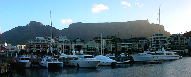 The tallest peak behind us is where the Table Mountain cable car drops people off. From there they can hike around for hours. It doesn't look like the mountain has a flat top ... but it does! |