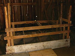 wood shed was emptied and re-filled so that the ancient wood can now be burned