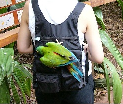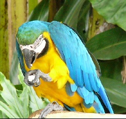 The parakeet is also very familiar and lives in larg flocks. Their beaks are formed to perfectly fit the skin of their favorite food... mangos! |