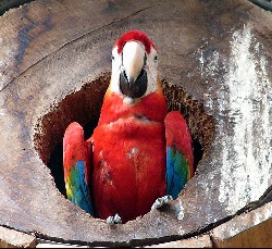 saw some nice blue This red parrot was quite content being around those of another species, but maybe its because he had a hole to jump back into. |