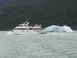 the start of our trip we passed icebergs which were flowing from the glaciers
