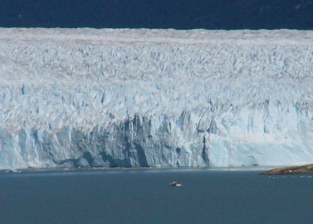 | The boat then turned and we got to see the Perito Moreno glacier; remember that this is only the right half of the glacier face. | ||