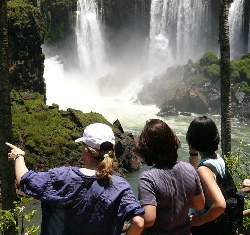 | The "after-lunch" group. | Happy to find some shade! | The "wall of falls" in the back. |