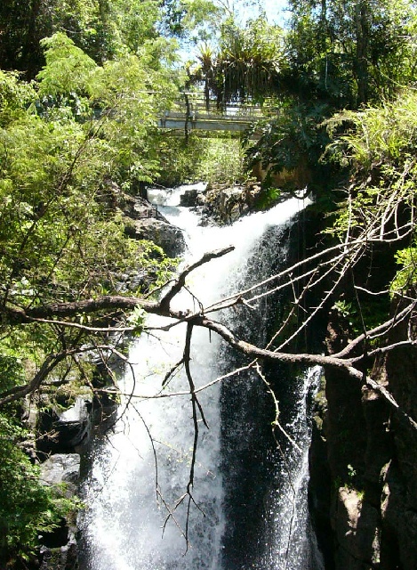 The trail we took on the previous tour is above these falls. | This frontal view shows the path that the water takes. |