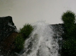 | The amount of water, and the speed that it was traveling, was quite amazing. We were told the water was low, so imagine what it could be like! In the closer picture, you can see the turmoil of the water. | ||