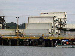 | We passed the deep-water port where produce was loaded. |