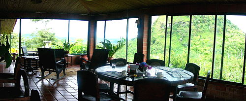 This central mountains are ancient volcanoes and have a unique shape. Well-placed signs helped us find the Trinidad Spa & Resort rather easily. |